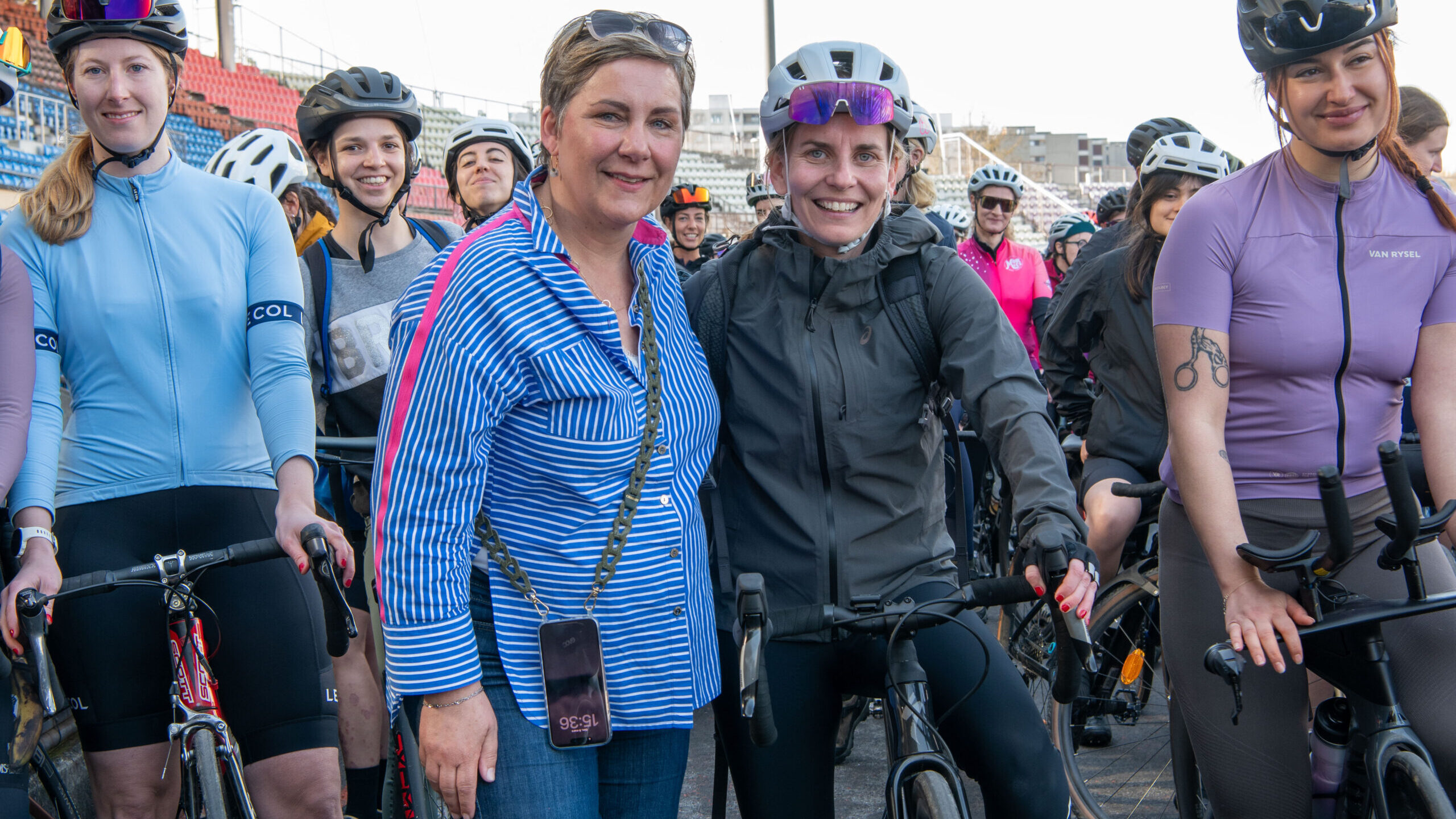 Un moment symbolique a marqué l’après-midi : les participantes ont été invitées à rouler ensemble sur la piste du stade d’athlétisme. Vu depuis les gradins, le peloton donnait soudain toute la mesure de la mobilisation. Pour Lillie, l’émotion était palpable :